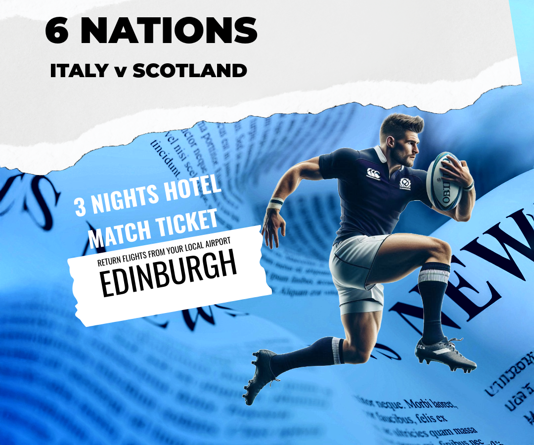 Italy v Scotland 2026 Package includes flights, three nights accommodation & match ticket.